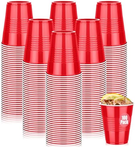Sufficient quantity:Each set contains 100 red plastic cups,sufficient quantity, each cup has a capacity of 12 ounces, which can hold a large amo...