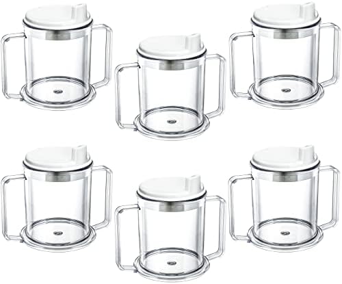 View full detailsEaasty 6 Pcs Adult Sippy Cup for Elderly, 10 oz Plastic Spill Proof Cups with 2 Handles for Adult Elderly Care Hospital Drinking Mug Easy to Grasp Handles for Hot and Cold Beverages (White)