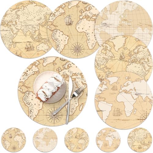 View full detailsEaasty 50 Disposable World Map Paper Placemats Vintage World Map for Old Paper Retro Style Decorative Travel Adventure Table Mat for Geography Learning Education Traveler Theme Crafts (12.6 x 12.6'')