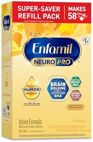 View full detailsEnfamil NeuroPro Baby Formula, Infant Formula Nutrition, Triple Prebiotic Immune Blend, 2'FL HMO, & Expert-Recommended Omega-3 DHA, Perfect Choice for Baby Milk, Non-GMO, Refill Box, 31.4 Ounces (Pack of 4)
