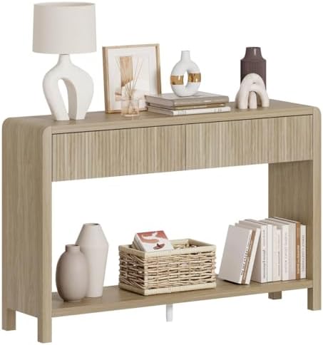 View full detailsFATORRI Console Table for Entryway Storage, Wood Sofa Tables for Living Room, Couch Table with 2 Drawers for Hallway (47.2 inch, Light Walnut)