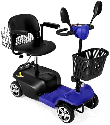 View full detailsMobility Scooter, 4 Wheels Rechargeable Electric Scooter for Adults and Seniors W/Lights,Removable Basket, Rotating Seat and Cup Holder, Blue