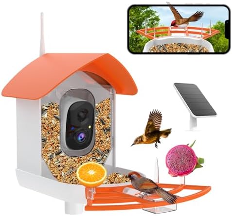 View full detailsSmart Bird Feeder with Camera,Solar Powered Outdoor WiFi Birds House Camera with Built in AI Identification,Auto Cloud Recording,FHD Video, for Bird Watching,Parents,Orange