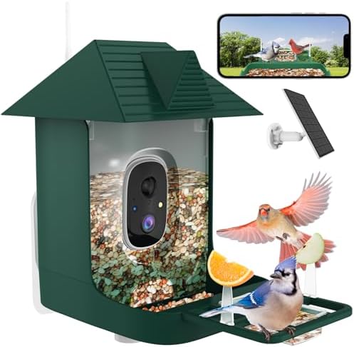 View full detailsBird Feeder with Camera,Smart AI Birds Breed Recognition,Birds Motion Detection with Real-Time Notice,Auto Capture Bird Watching WiFi Camera,Solar-Powered Outdoor Charging Bird House,Ideal Gifts,Green