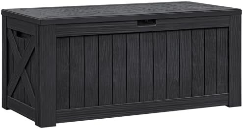 View full detailsFlamaker Resin Deck Box 120 Gallon Waterproof Large Outdoor Indoor Storage Box Imitation Wood Resin for Patio Furniture Garden Tools and Pool (Black)