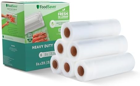 View full detailsFoodSaver Heavy-Duty Vacuum Seal 8 x 20' Roll, 6-Pack, Ideal for Food Storage and Sous Vide Cooking