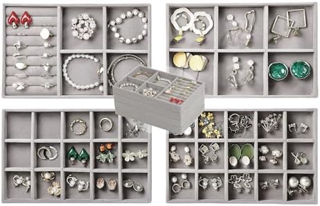 View full detailsSet of 4 Stackable Jewelry Trays Organizer, Velvet Earring Organizer, Jewelry Organizer Showcase Display Drawer Organizer Storage, Earring Holder Necklace Bracelet Ring Accessary Organizers (Gray)