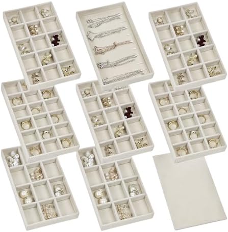 View full detailsSet of 8 Stackable Jewelry Organizer Trays with 1 Lid for Drawer & Dresser Organizer, Adjustable Velvet Jewelry Box Tray Earring Organizer Necklace Storage Ring Bracelet Display Case (Beige)