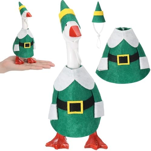 View full detailsChristmas Mini Desk Goose Outfit 7 Inch Silly Goose Statue Costume Mini Hat and Xmas Clothes Winter Christmas Table Key Holder Decor for Magnetic Duck Statue Desk Key Holder Decor (Elf)