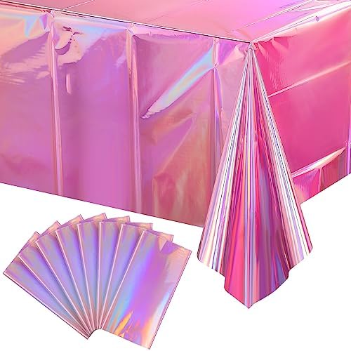 View full details8 Pack Iridescent Pink Plastic Tablecloths, FunnyPars Shiny Disposable Laser Rectangle Table Covers, Holographic Foil Tablecloth Iridescent Party Decorations for Birthday Wedding Christmas, 54x108Inch