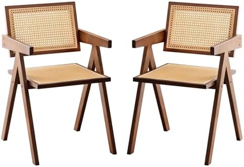 View full detailsRattan Accent Chairs, Modern Mid Century Dining Chairs Set of 2, Comfy Armchairs, Outdoor Rattan Chairs with Armrest for Bedroom Living Room Reading Room Dining Kitchen, Brown