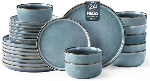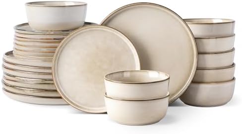 View full detailsGBHOME Stoneware Dinnerware Sets for 8,Round Reactive Glaze Ceramic Plates and Bowls Set,Highly Scratch Resistant| Dishwasher & Microwave Safe Dishes Set,Service for 8(24pc)