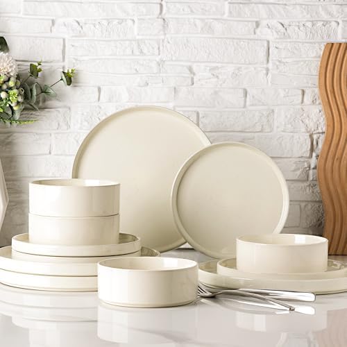 View full detailsGBHOME Dinnerware Set for 4, 12 Piece Speckled Plates and Bowls Set with Glazed Bottom, Chip & Scratch Resistant Stoneware Plates Sets, Dishwasher & Microwave Safe Dishes (Light Beige, Service for 4)