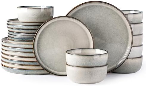 View full detailsGBHOME Ceramic Dinnerware Sets for 8, 24 Pieces Stoneware Plates and Bowls Sets, Scratch Resistant Dishes, Dishwasher & Microwave Safe, Reactive Glaze-Space