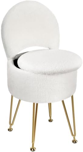View full detailsGREENSTELL Small Vanity Stool Chair with Storage and Folding Back, 13" x 13" x 17.7" Faux Fur Soft Ottoman for Teenager, 4 Metal Legs with Anti-Slip Feet, Furry Padded Seat for Makeup, Bedroom, White