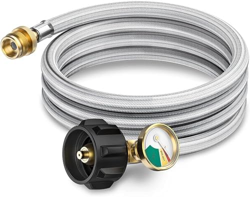 View full detailsPros 6ft Propane Hose Adapter 1lb to 20lb with Gauge, LP Tank Gas Line, 1 lb to 20 lb Propane Tank Converter Fit for Weber Q Grill/Coleman Travel Stove/Blackstone 17"&22" Griddle/Buddy Heater