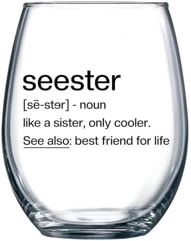 View full detailsSister Birthday Gifts Idea - Seester Definition Present for Her - Funny Best Friend Bestie from Brother - Friendship Soul Gifts for Women - Big Sister Sorority Gift - 15 oz Wine Glass