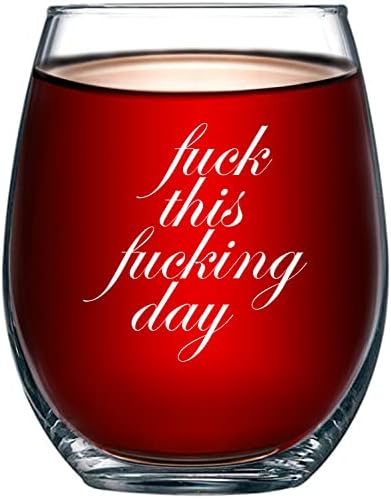 View full detailsFuck This Fucking Day Funny Stemless Wine Glass 15oz- Birthday or Christmas Gift For Office Coworkers Mom Dad - Sarcastic Gag Presents For Him Her Women Mother Best Friend