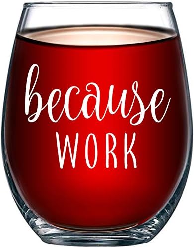 View full detailsBecause Work Funny Stemless Wine Glass 15oz - Unique Office Gift Idea for Coworker, Best Friend or Boss Lady - Perfect Birthday Gifts for Men or Women – Gag Gifts for Employee, Staff, Secretary