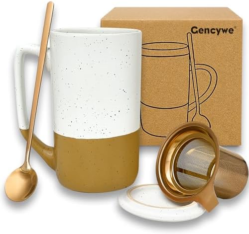 View full detailsCeramics Large Tea Cup with Loose Leaf Infuser, Spoon and Lid, 16 oz Tall Coffee Mug, Microwave and Dishwasher Safe, Rustic Matte Ceramic Glaze, Tea Strainer, Amber