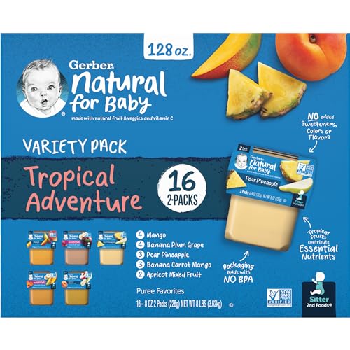 View full detailsGerber 2nd Foods Natural for Baby Tropical Adventure Baby Food, Variety Pack, 4 oz Tubs (32 Pack)
