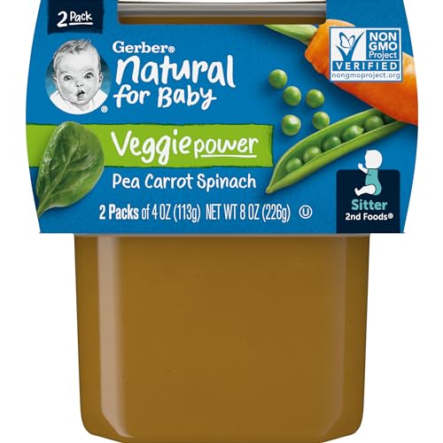 View full detailsGerber 2nd Foods Pea, Carrot & Spinach Pureed Baby Food, 4 Ounce Tubs, 2 Count (Pack of 8)