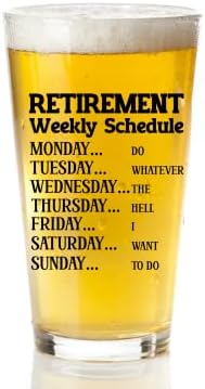 View full detailsWeekly Schedule Retirement Glass - Funny Beer, Wine, and Coffee Stocking Stuffers and Gag Gifts for Retirees - Retirement Gifts for Men & Women - Scratch Resistant - Printed in the USA (Beer Glass)
