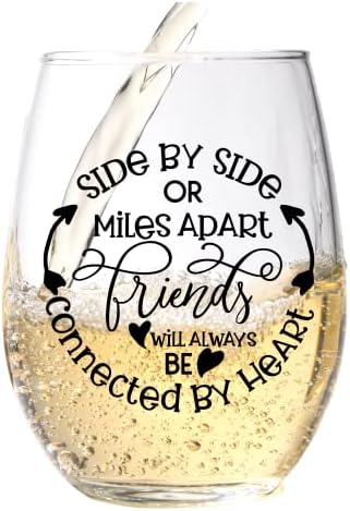 View full detailsSide By Side Or Miles Apart Best Friend Wine Glass - 15 Oz, Scratch-Resistant Wine Glass - Birthday Gifts for Her, Stocking Stuffer, or Long Distance Friendship Gifts for Women - Printed in the USA
