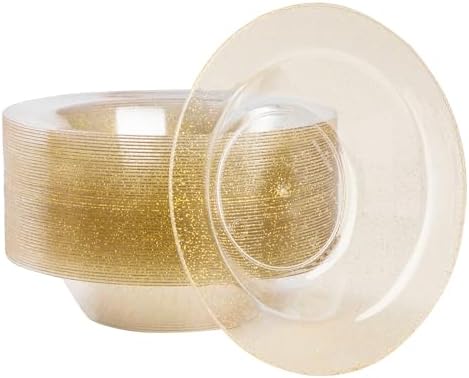 View full detailsGoodluck 50 Pack Gold Glitter Plastic Bowls, 12oz Disposable Soup Bowls, Heavy Duty Dessert Bowls for Weddings, Parties, Dinners, Catering, Christmas and Everyday Use