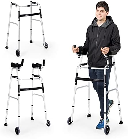 View full detailsGoplus Walkers for Seniors, Foldable Standard Walker with 5’’ Wheels and Removable Padded Armrests 440lbs, Lightweight Walking Mobility Aid, Folding Platform Walker for Elderly, Handicap, Disabled