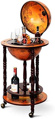 View full detailsGoplus Globe Bar, 17.5” Liquor Globe Bar Cart with Wheels, Bottom Shelf, Old World Map, 16th Century Italian Replica Retro Wine Alcohol Stand, Globe Bar Cart for Dining Room Living Room Home