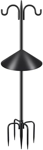 Gtongoko Bird Feeder Pole Squirrel Proof, 108 Inch Double Shepherds Hook for Outdoor with Squirrel Baffles Adjustable Heavy Duty with 5 Prongs Base for Hanging Plants, Bird Feeders, Black