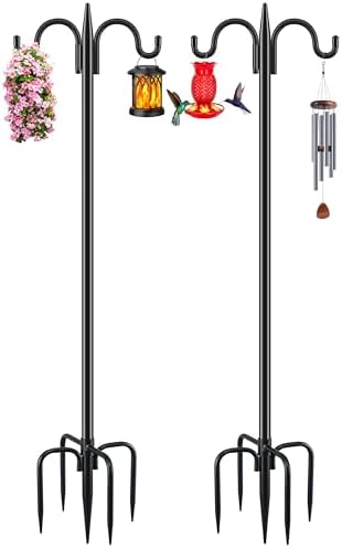 Gtongoko Double Shepherds Hook for Outdoor, 2 Pack 92 Inch Heavy Duty Bird Feeder Pole 3/4 Inch Thick Garden Hooks for Hanging Hummingbird Feeder, Plant Baskets, Solar Light Lanterns