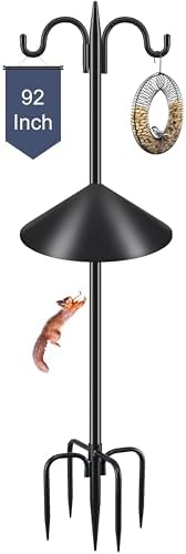 Gtongoko Bird Feeder Pole Squirrel Proof, 92 Inch Double Shepherds Hook for Outdoor with Squirrel Baffles Adjustable Heavy Duty with 5 Prongs Base for Hanging Plants, Bird Feeders, Black
