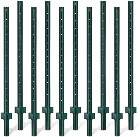 Gtongoko 4 Feet Sturdy Duty Metal Fence Post, Pack of 10, U Post for Fencing Green Fence Posts for Garden Yard and Outdoor Wire