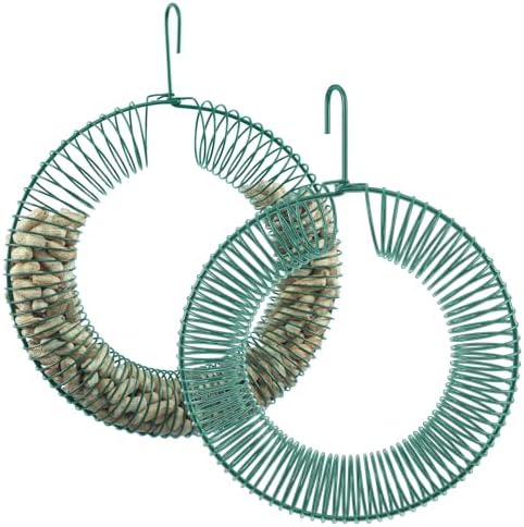 Gtongoko 2 Pack Peanut Wreath Bird Feeder, Rust & Waterproof, Solid Steel Durable Whole Peanut Wild Bird Feeder with Hanging Hook, Outdoor, Green, 11 x 15.4 inch