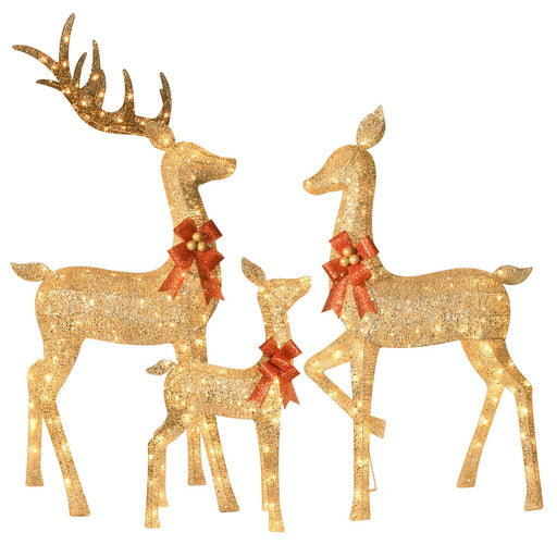 3-Piece 2D Lighted Christmas Deer Family Set - HOYECHI Large Outdoor Yard Reindeer Holiday Decoration with 145 LED Lights, Stakes, Zip Ties - Gold