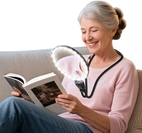 View full details5X Large Rechargeable Magnifying Glass for Reading with Light, Hands-Free Neckwear Magnifying Glasses Full Book Page Magnifier Sheet for Repair Sewing DIY Low Vision Seniors