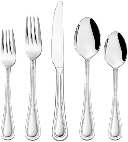 View full detailsHaWare Silverware Set, 60-Piece Pearled Edge Stainless Steel Flatware for 12, Beading Tableware Cutlery Utensil for Home, Mirror Polished, Dishwasher Safe