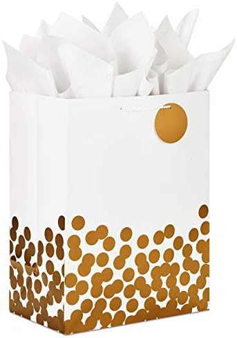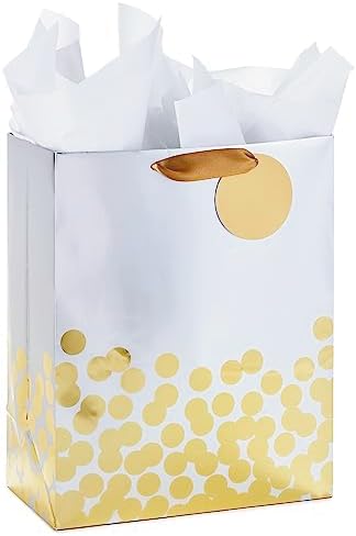View full detailsHallmark 17" Extra Large Gift Bag with Tissue Paper (White with Gold Polka Dots) for Christmas, Hanukkah, Weddings, Engagements, Bridal Showers, Graduations, Retirements, Birthdays, Valentine's Day