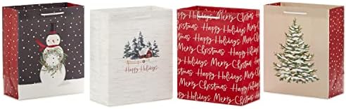 View full detailsHallmark 9" Medium Christmas Gift Bags (4 Bags: Snowy Tree, Rustic Farmhouse, Snowman, "Merry Christmas") in Gray, Red, White, Brown