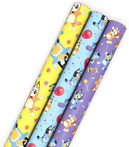 View full detailsHallmark Bluey Wrapping Paper Rolls for Kids (3 Rolls: 60 Sq. Ft. Total) Purple, Blue and Yellow Gift Wrap for Birthdays, Christmas, Valentine's Day