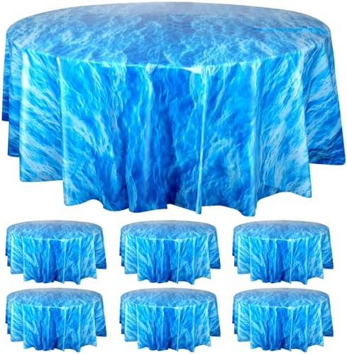 View full details6 Pcs Round Ocean Waves Tablecloths Disposable Plastic Ocean Blue Table Cloth Round Table Covers for Under The Sea Beach Surf Ocean Pool Party Birthday Party Decorations, 84 Inch