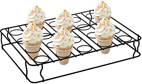 View full detailsHiceeden 20 Holes Ice Cream Cone Stand, Non-Stick Cupcake Cone Baking Rack, Metal Ice Cream Holder Cupcakes Pastry Tray for Baking, Cooling, Displaying, Serving Treats