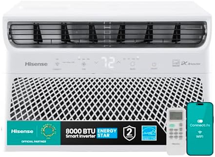 View full detailsHisense 8,000 BTU Portable Air Conditioner with Dual Hose & Inverter, 350 Sq Ft, Wi-Fi, ConnectLife App for Google and Alexa, 3 operating modes, Noise 42 dB(A) - HAP0824TWD (Renewed)
