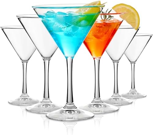 View full detailsUnbreakable Martini Glasses Set of 6, 10 oz Plastic Martini Cocktail Glasses with Stem, Reusable Cocktail Glasses for Bar, Margarita, Whiskey, Gin, Tequila, BPA-Free, Top Rack Dishwasher-Safe, Clear