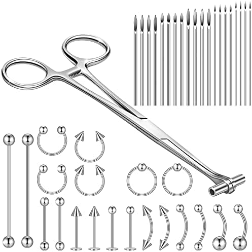 View full details41 Pieces Body Piercing Tool Kit Include Septum Forceps Clamp Pliers 20 Pcs 316L Stainless Steel Piercing Needles and 20 Pcs Nose Ring Hoop Jewelry for Ear Lip Belly Navel Tongue (Classic Style)