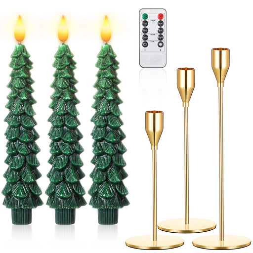 View full detailsHonoson 3 Sets Flameless Christmas Tree Taper Candles with Holders Remote Control, LED Taper Candles AAA Battery Operated Flickering Candlesticks for Window Fireplace (Gold,Classic Style)