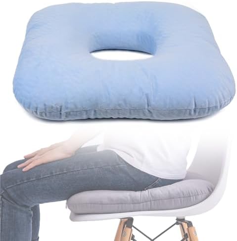 View full detailsDonut Pillow for Tailbone Pain Relief, Wheelchair Cushion for Hemorrhoids and Bed Sores, Pregnancy, Donut Pillow Suitable for Office, Long Travel, Car and Home Sofa (Light Blue-Diagonal Grid)