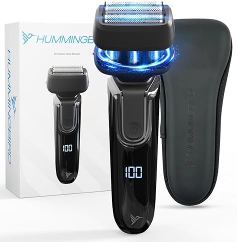 View full detailsHUMMINGBIRD MK7 Premium Foil Face Shaver, Four Blade Foil Shaver with Long Hair Leveler, Electric Razor for Men, Waterproof Wet & Dry Shave, Cordless USB-C Rechargeable, LED Display, Travel Case